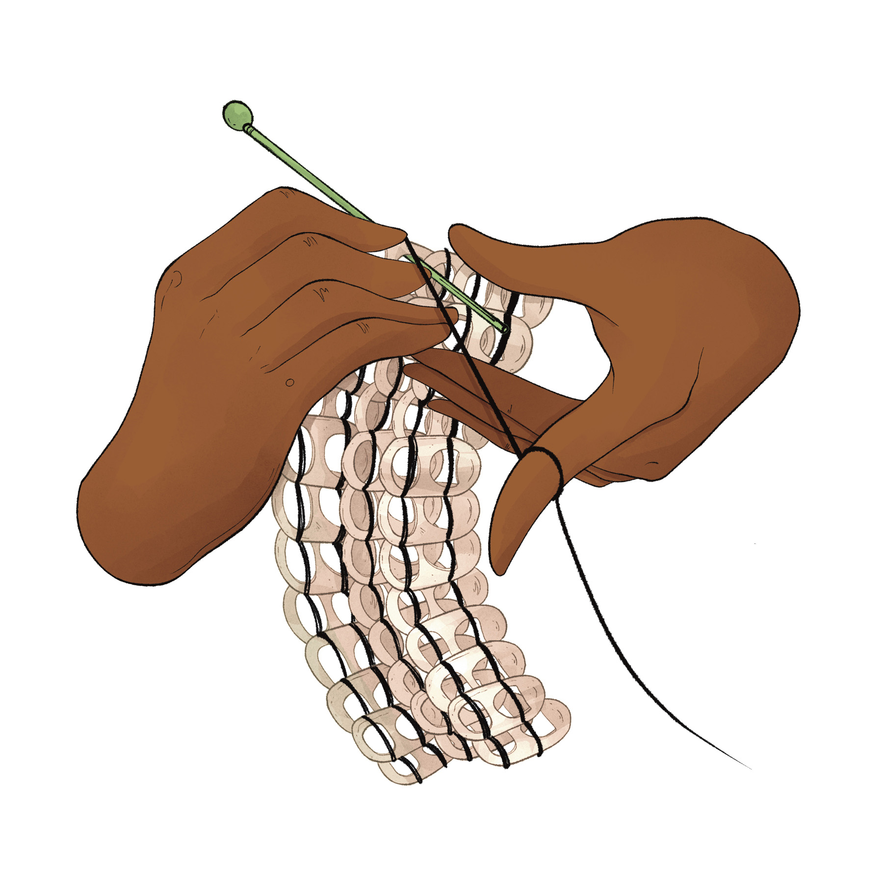 ようやく準備が整うと、編み手たちの出番です。プルタブを糸とともに編み込み、金属のようでやさしい“チェーンメイル(※鎧形式の防具の一種)”のような生地を生み出します。